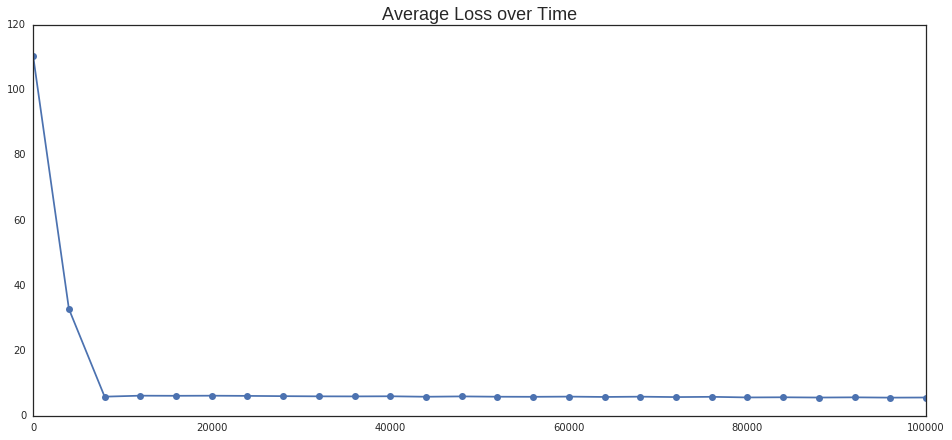 plt.title('Average Loss over Time', size=18);